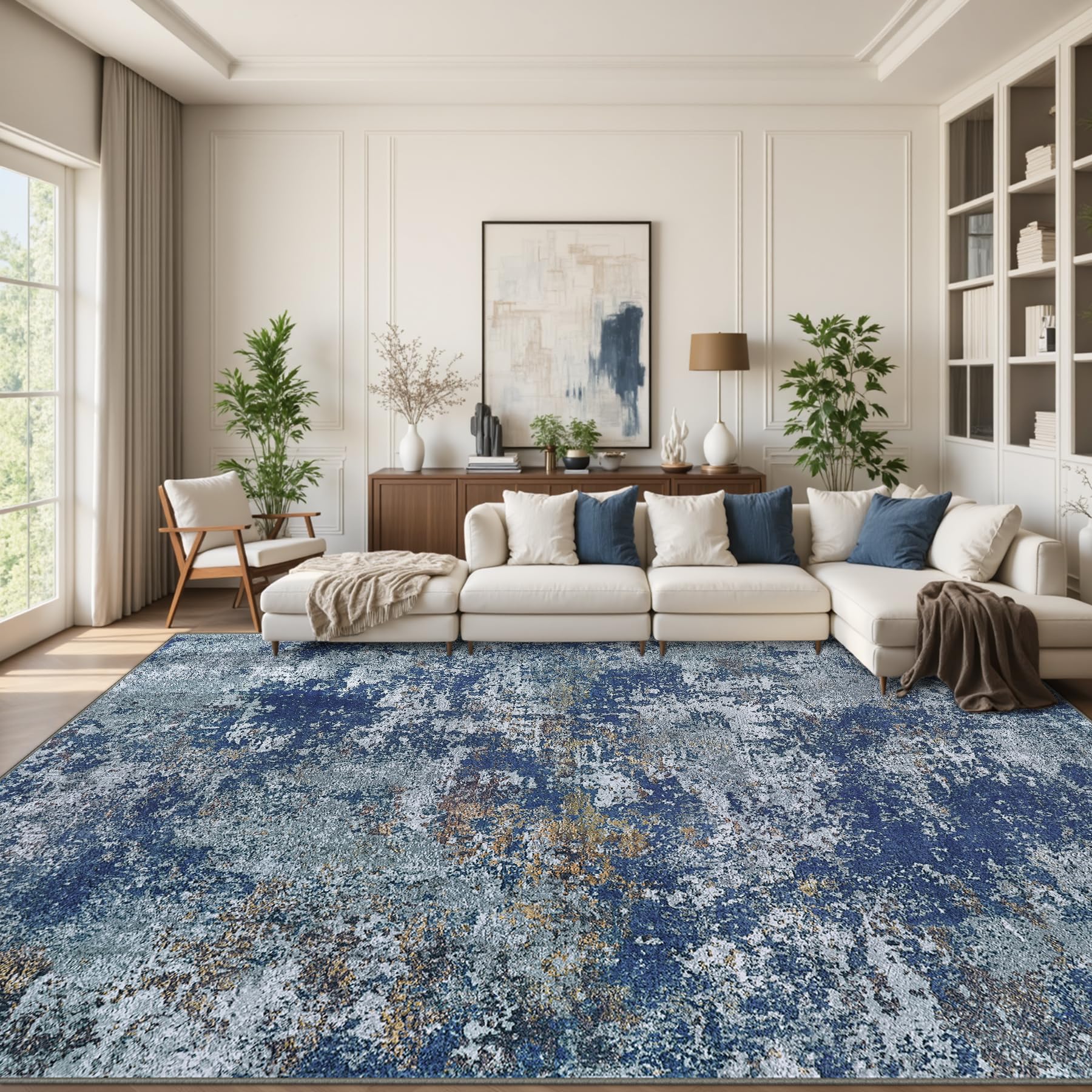 This rug is a practical and stylish choice for our living room because it combines softness, durability, and easy maintenance.